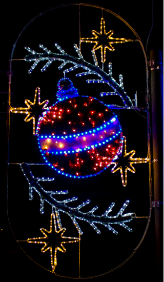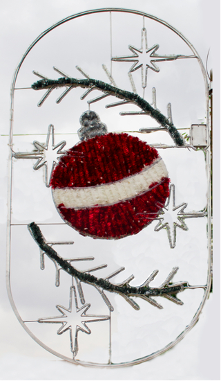 Ornament realizat pe suport rigid din profil din aluminiu; ţesătură din beteală din material plastic