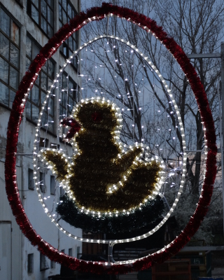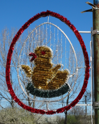 Ornamentul este realizat pe suport rigid din profil de aluminiu; ţesătura este din beteală aurie şi verde din material plastic; ornamentul mai conţine beteală albastră şi roşie.